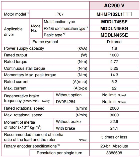 Panasonic Servo Motor 1KW Panasonic AC Servo Motors and Drives Servo Motor (เซอร์โวมอเตอร์) และ Servo Driver (เซอร์โว ไดร์เวอร์) 1KW