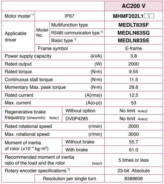 Panasonic AC Servo Motors and Drives Servo Motor (เซอร์โวมอเตอร์) และ Servo Driver (เซอร์โว ไดร์เวอร์) 2KW