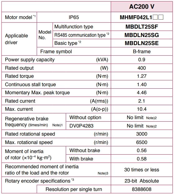 Panasonic AC Servo Motors and Drives Servo Motor (เซอร์โวมอเตอร์) และ Servo Driver (เซอร์โว ไดร์เวอร์) 400W