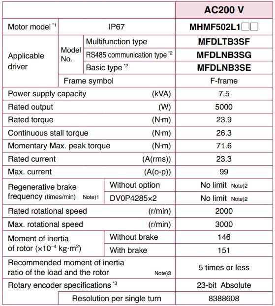Panasonic AC Servo Motors and Drives Servo Motor (เซอร์โวมอเตอร์) และ Servo Driver (เซอร์โว ไดร์เวอร์) 5KW