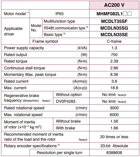 Panasonic AC Servo Motors and Drives Servo Motor (เซอร์โวมอเตอร์) และ Servo Driver (เซอร์โว ไดร์เวอร์) 750 W